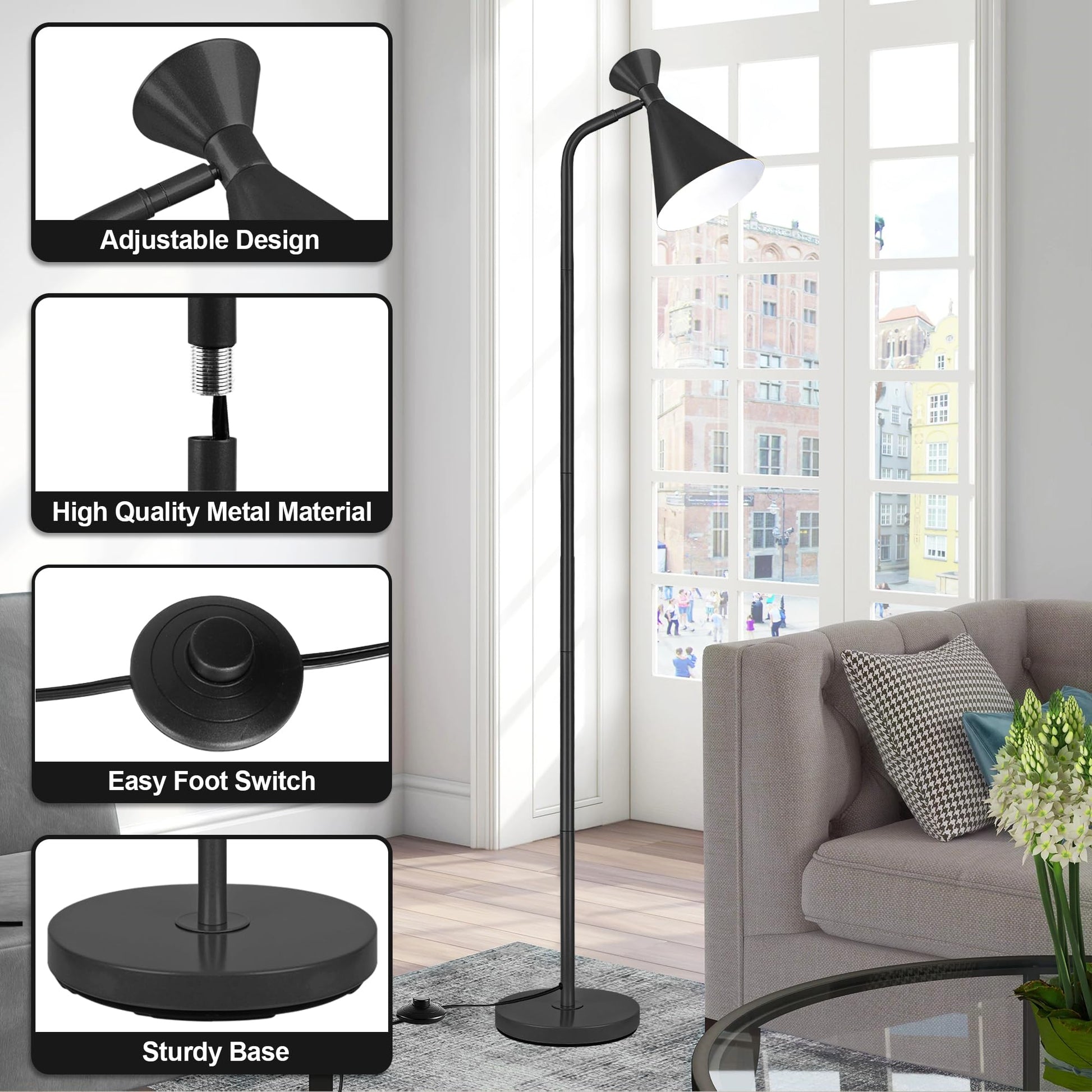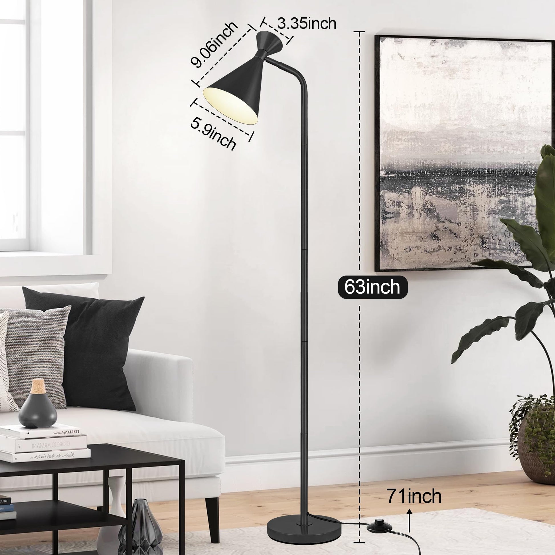 - Adjustable Angle: This standing lamp is designed with an adjustable lamp head. It can rotate horizontally up to 350° and vertically up to 90°, allowing for flexible adjustments to meet your lighting needs in different spaces.