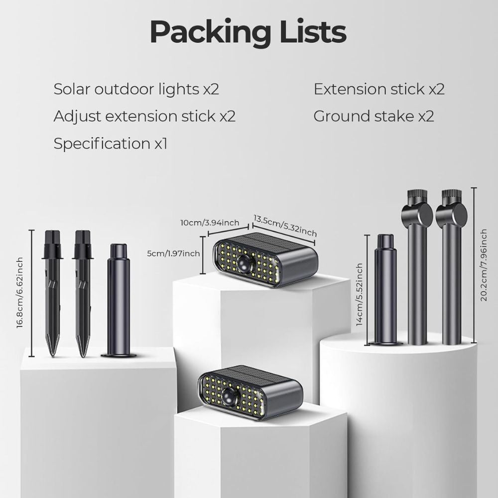 ROTTOGOON 2 Pack LED Solar Motion Sensor Landscape Spotlights, Modern Style, Adjustable Brightness, Wall/Floor Mount, Warm White, Decoy Camera