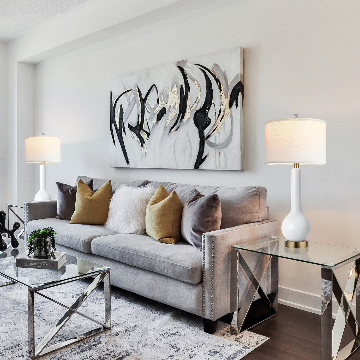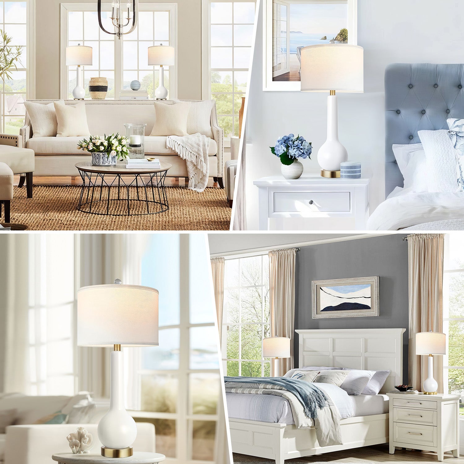 27.5” White Ceramic Modern Table Lamp with Dual USB Port - for Living Room,Dining Room,Bedroom,Office,Nightstand, 2 Pack