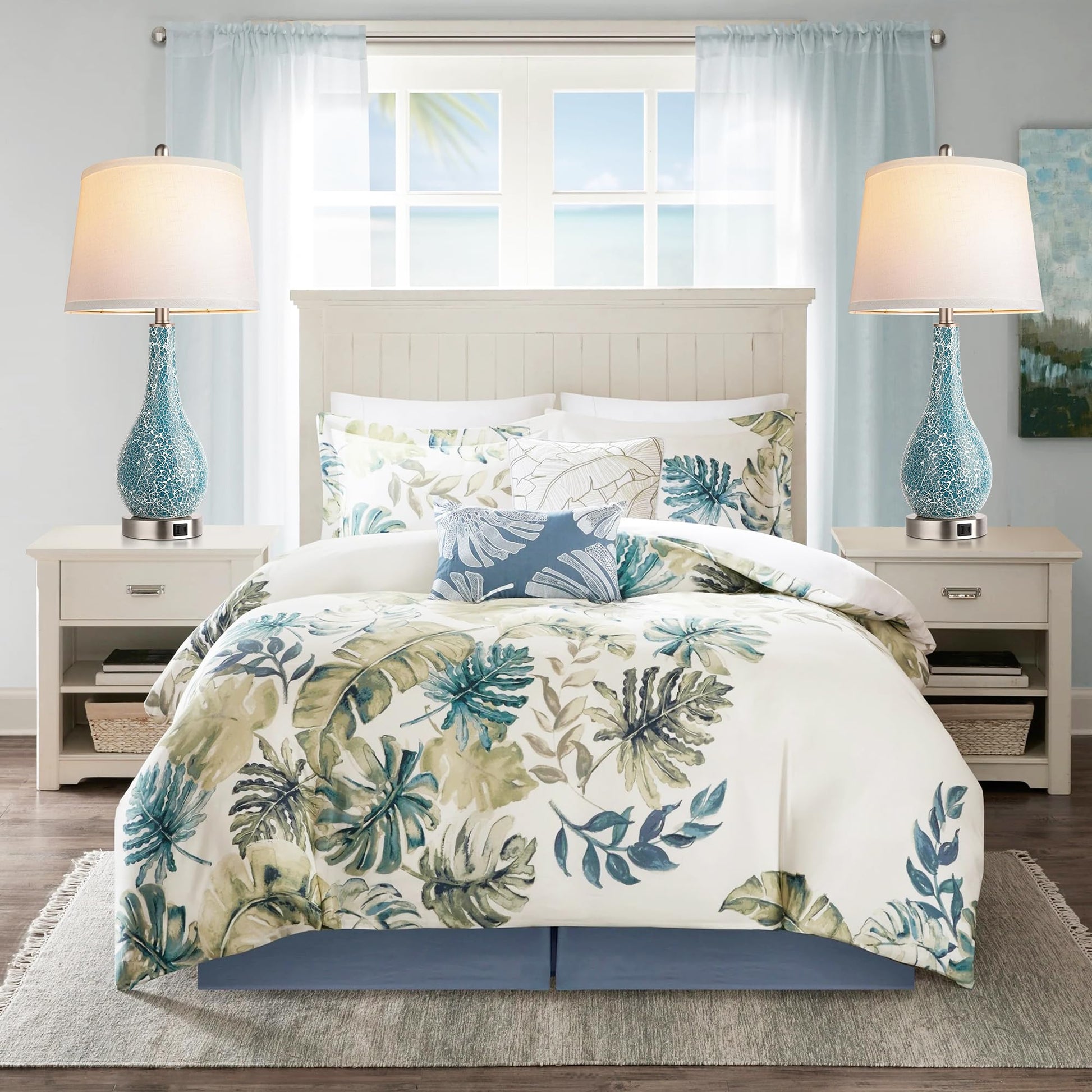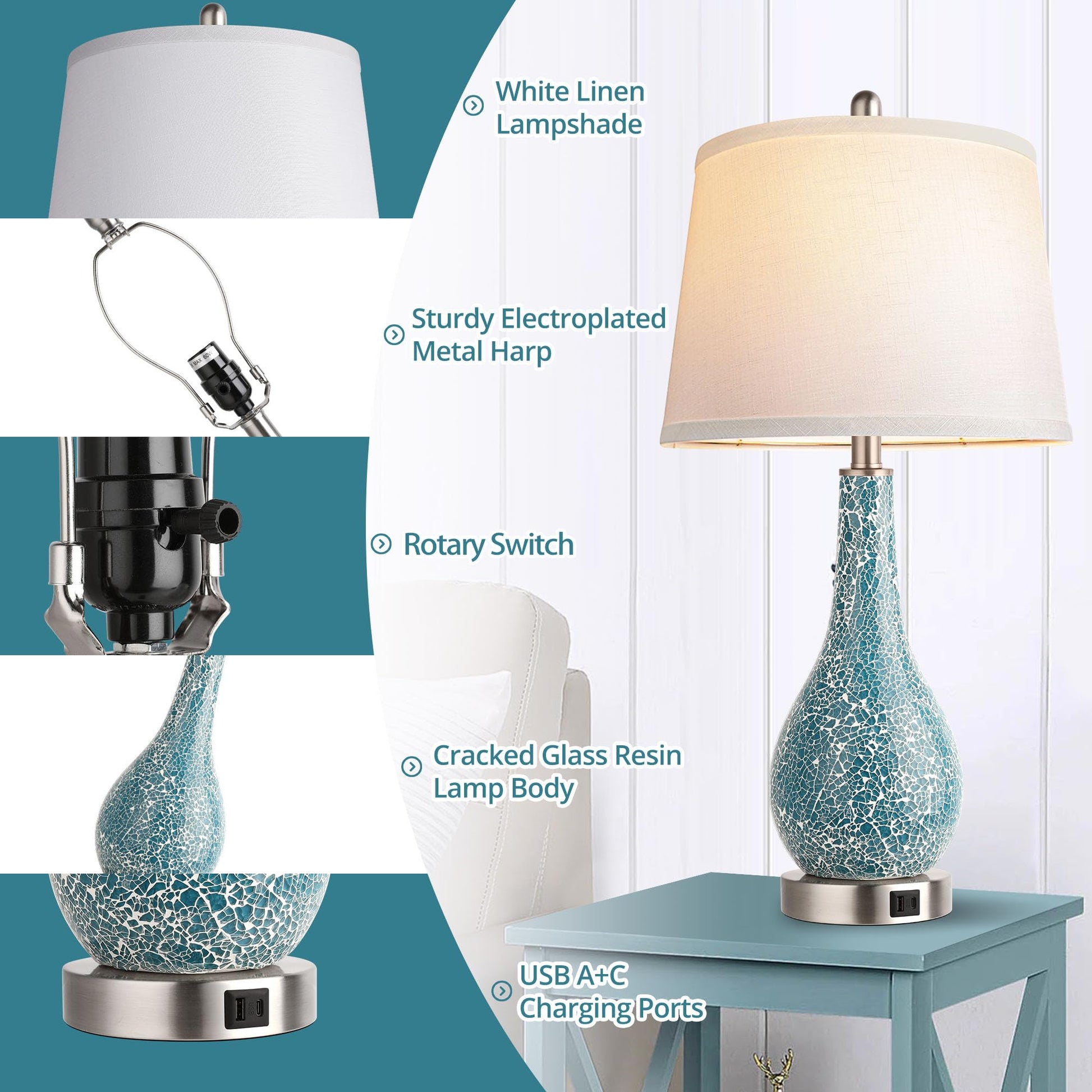 Fabric shade & non-slip base: the white lampshade of the table lamps set of 2 can distribute the light evenly and soften the light. The lamp's metal parts make the bedroom lamps set of 2 sturdy. The blue crackle pattern of the nightstand lamps set of 2 shows unique beauty, shining different brilliance from different angles. The thick non-slip base allows the bedside table lamp to be placed on the table at will, without worrying about being knocked down slightly.