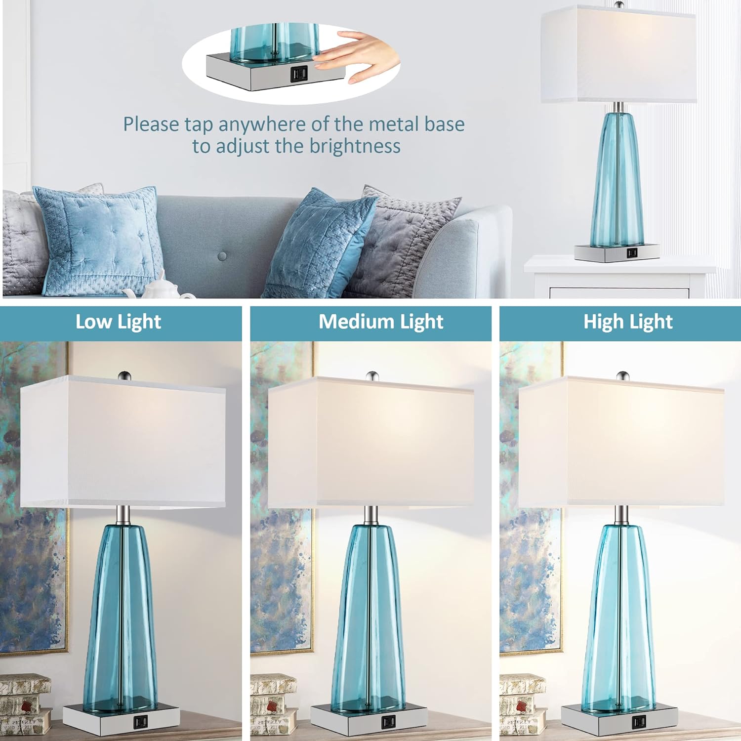 - 3-way dimmable touch control: the bedside lamp offers 3 level brightness options (Low, Medium, High) to meet your different needs. Just tap anywhere of the metal base to adjust the brightness (Please note: Base touch only). Nightlight for a good sleep or nursing. Accent lighting for a warm mood. Proper high comfortable brightness for studying or working. It’s very handy to operate.