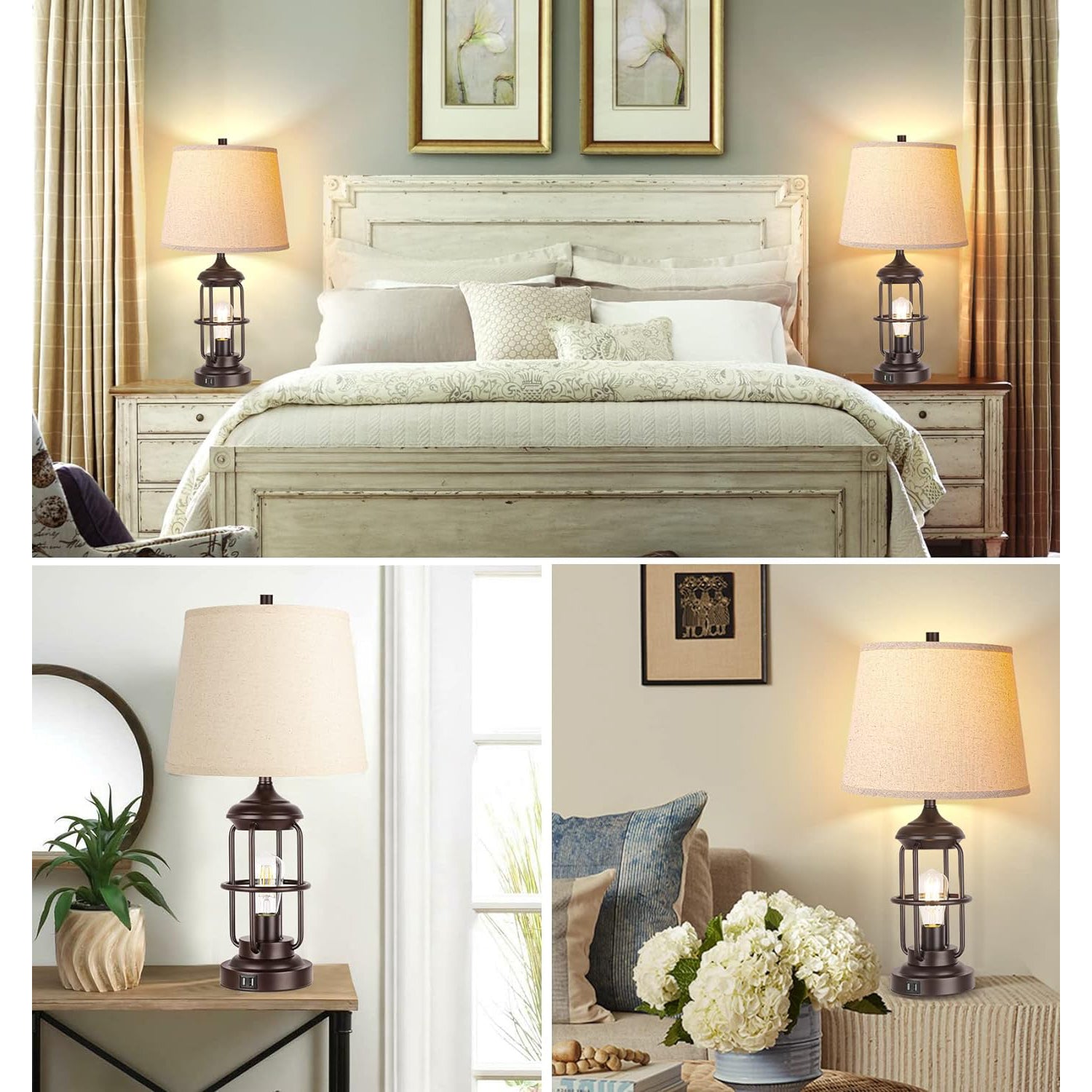 - 【Built-in 5V 2.1A dual USB ports】: Each table lamp for living room is designed with 2 USB ports at the lamp base for the charging of your electronic devices, saving your effort and time to find other ports and keeping your side table tidy. No matter whether the lamp for living room is on or off, you can get your electronics charged when the rustic lamp is powered. The bedside lamp set of 2 would be perfect beside a sofa for reading or as nightstand lamp to cut down on clutter from wall chargers.