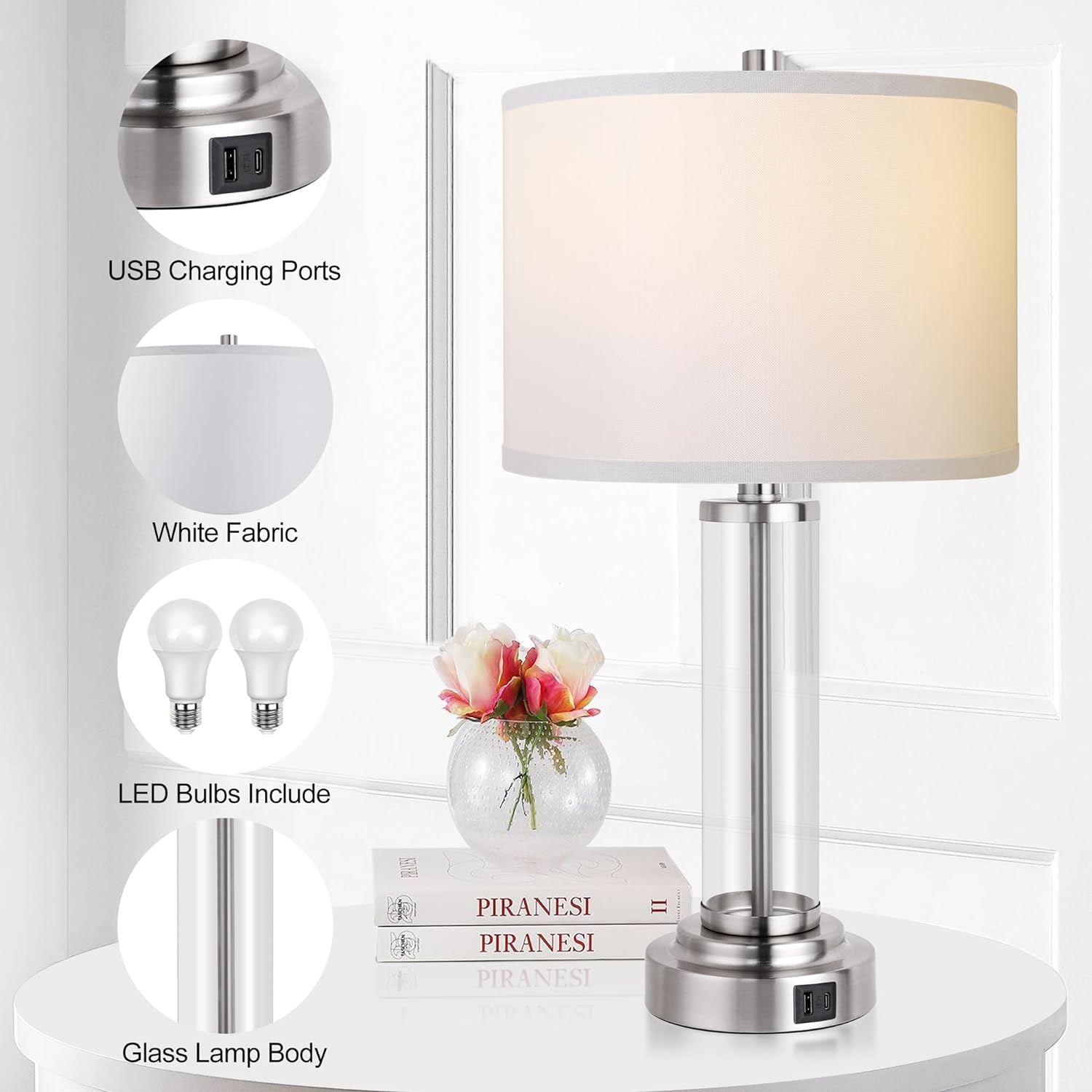 - [3-Way Dimmable Touch Control] USB table lamp set of 2 adopts Touch Control Dimmable, with three dimming modes low, medium, and high. You can touch it to adjust the brightness you want on the lamp base. Protect your eyes.