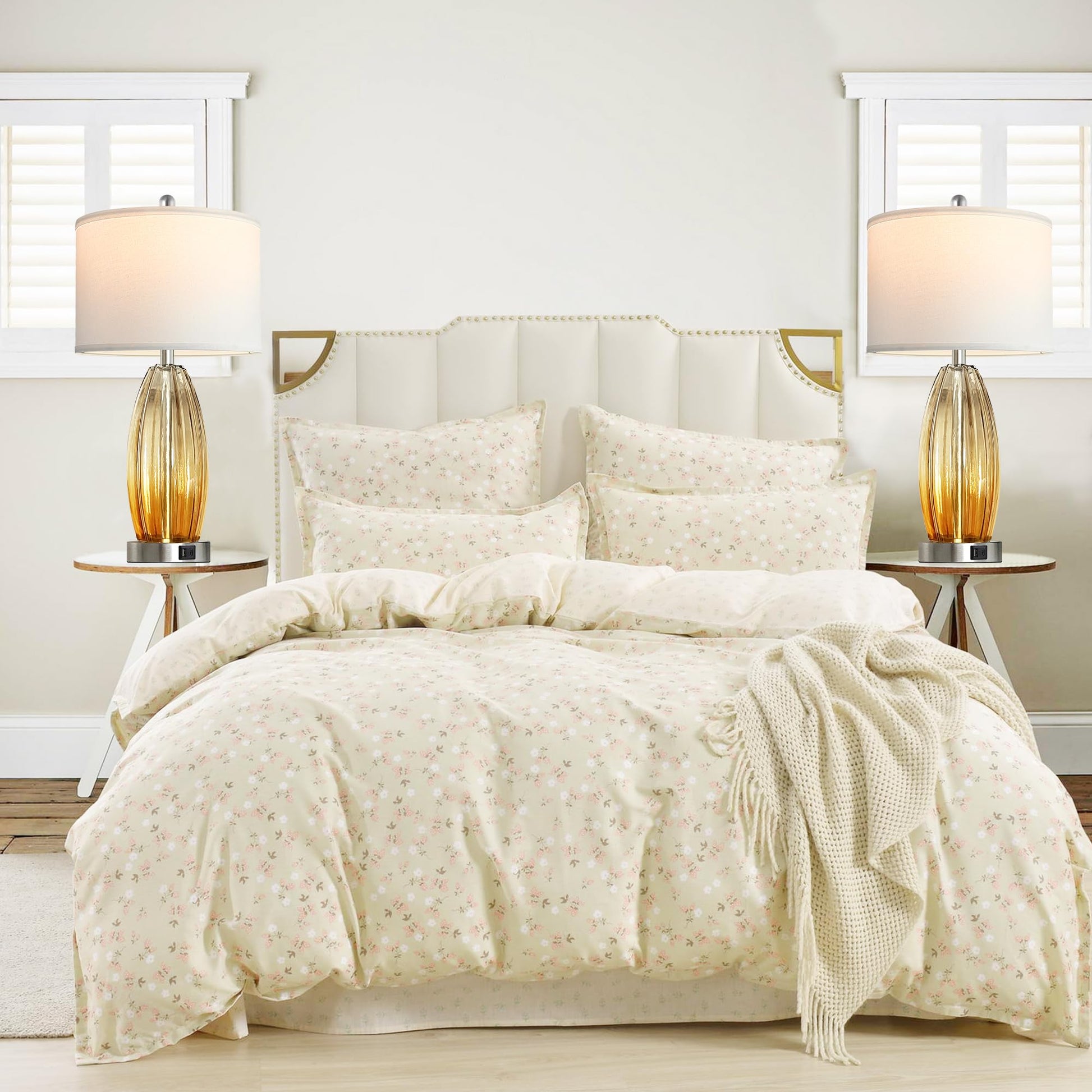 ROTTOGOON Table Lamps for Living Room Set of 2, Glass Table Lamp with USB C+A Ports & 2 LED Bulbs for End Tables Bedside