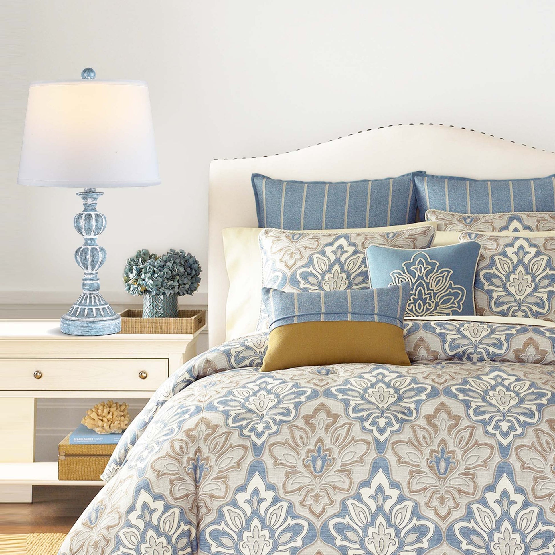 Coastal vintage style table lamp: inspired by coastal vintage style, each table lamp features a blue washed finish for a more elaborate design. White tapered drum shades on top are the perfect finishing touch to these beautifully old-fashioned bedside lamps. Great for the entryway, living room, bedroom, or office area.