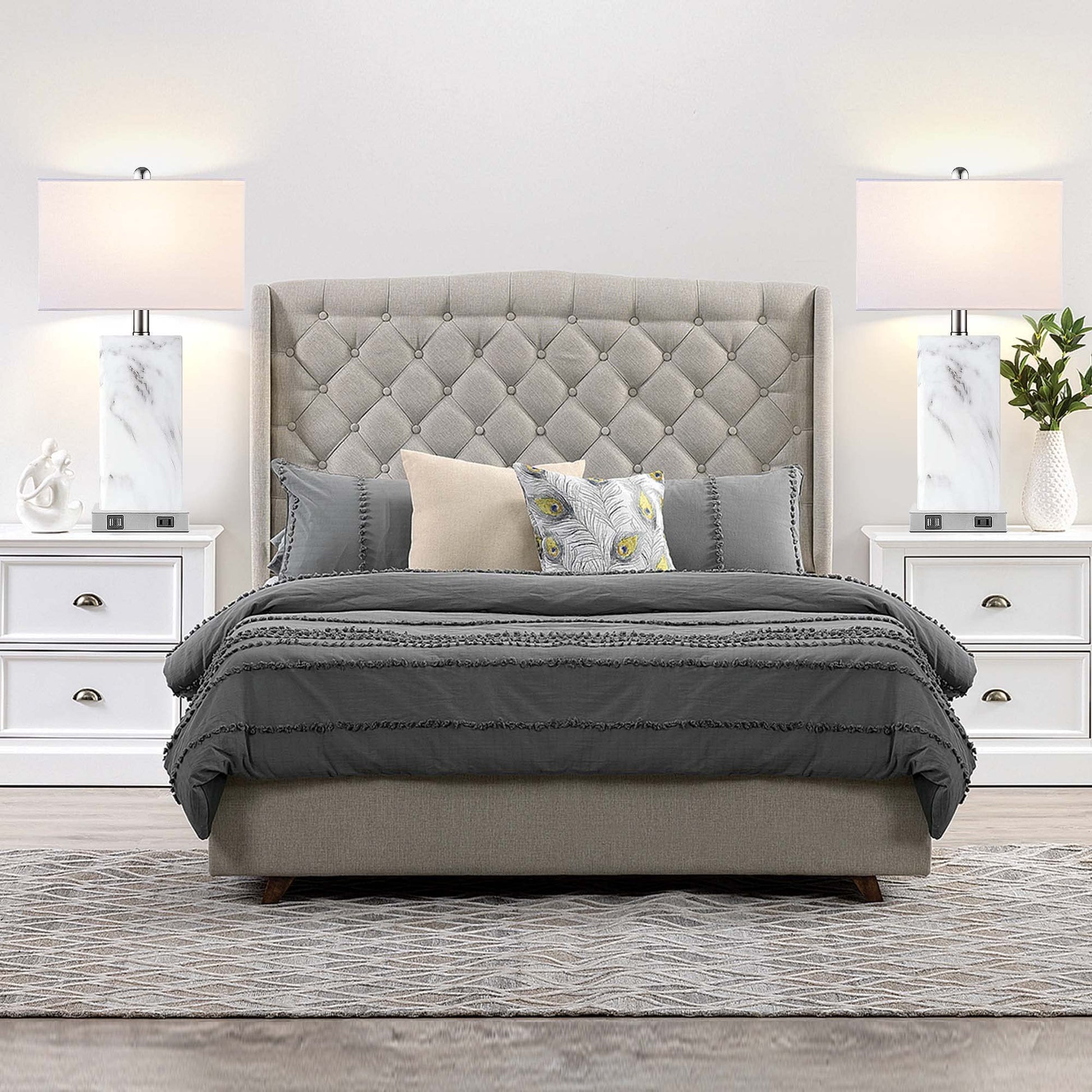 Easy to assemble: the assembling of our table lamp sets are super easy. No tools needed, just take a few minutes to install all parts together. The  table lamps are constructed of reliable material which ensures long-lasting use. We stand after our products, If you have any questions about our products, please feel free to contact us. We will help within 24 hours.