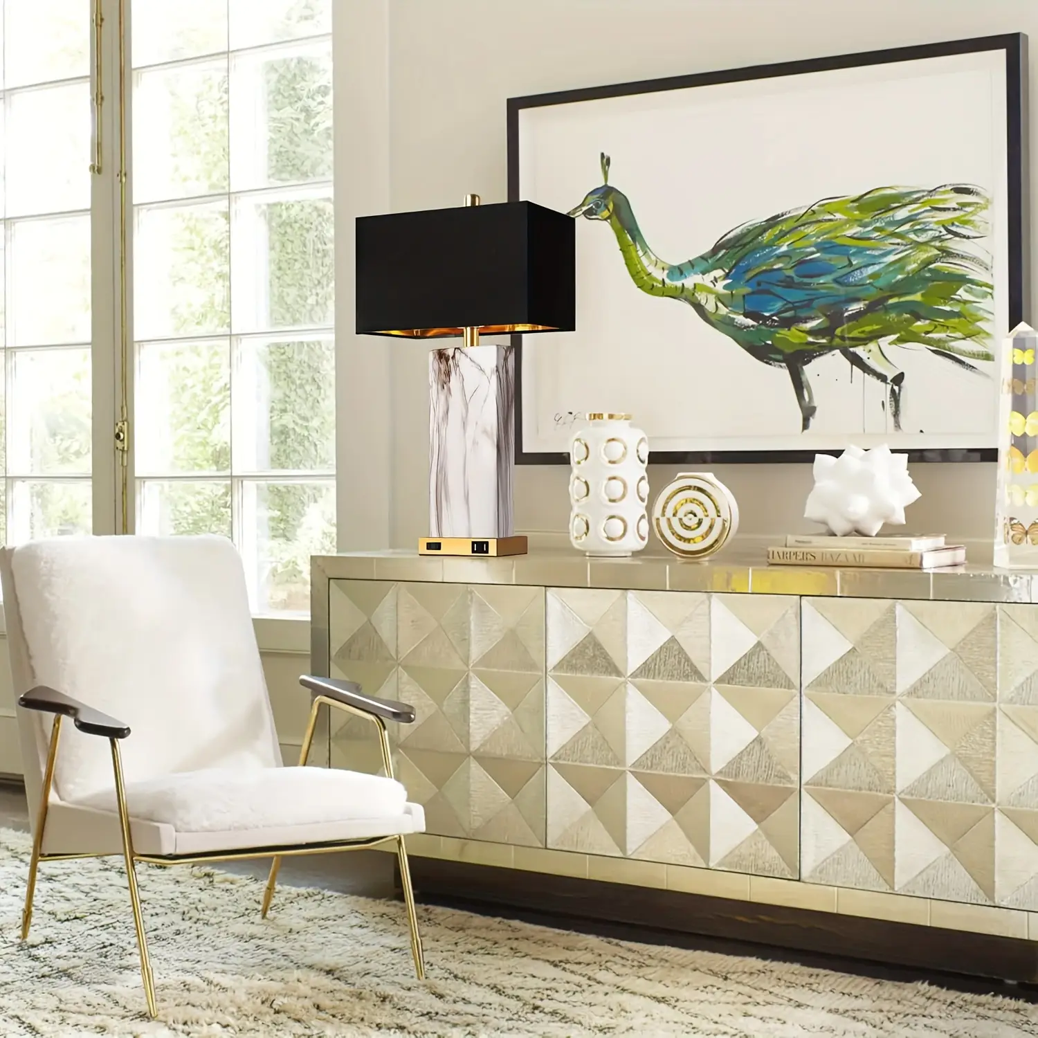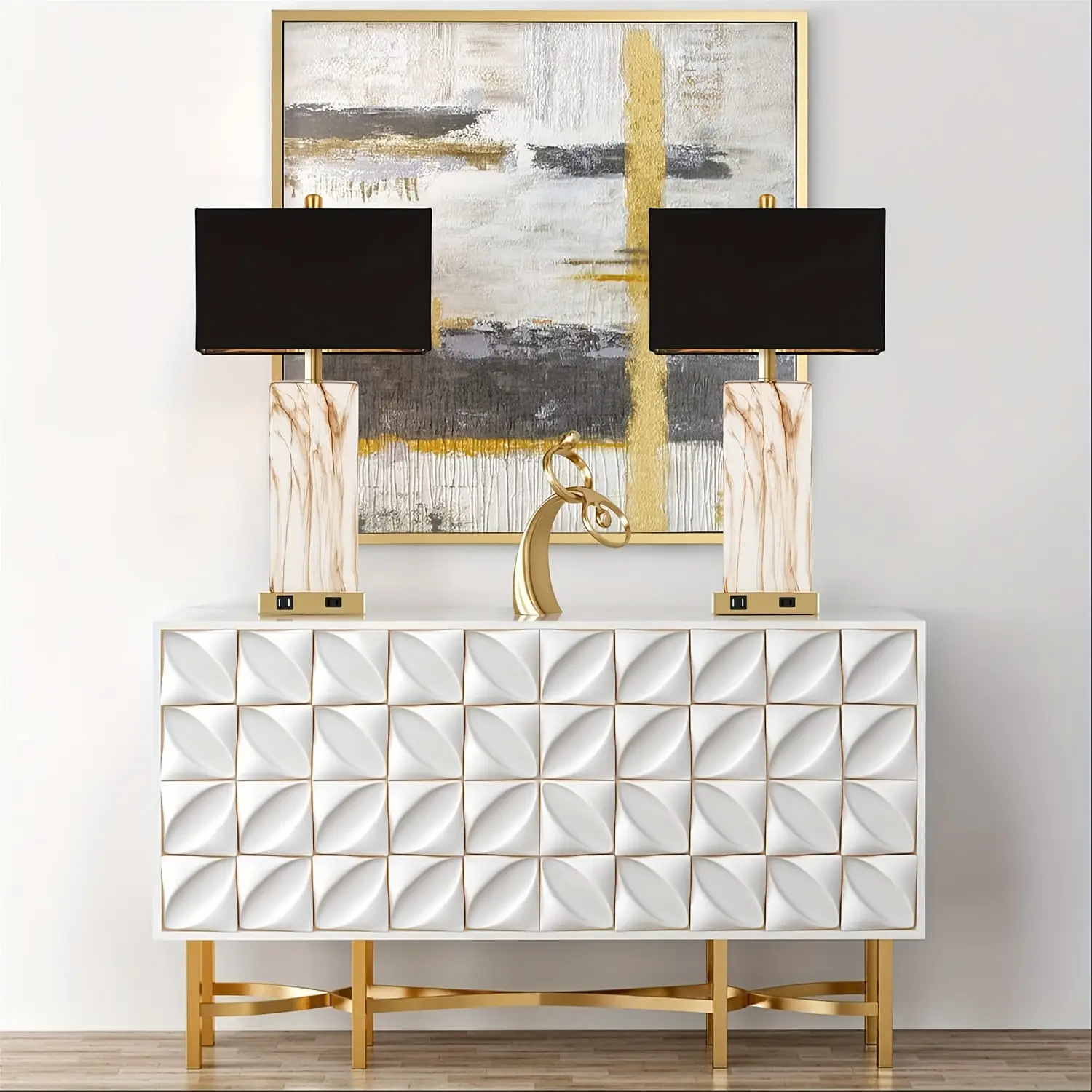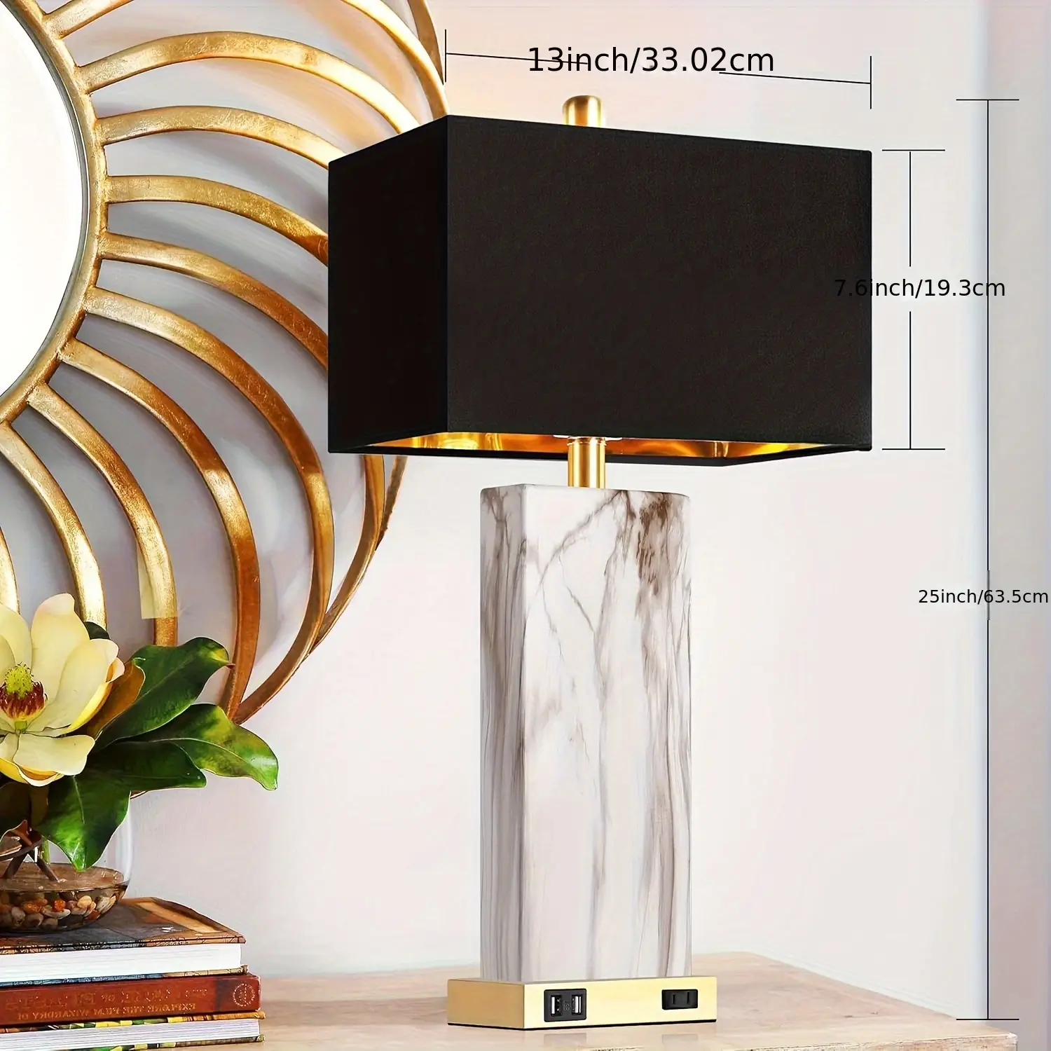 ROTTOGOON Touch Control Table Lamps Set of 2, Modern Ceramic Bedside Lamp with 2 USB Ports 1 AC Outlet for Living Room, Bedroom (LED Bulbs Included)