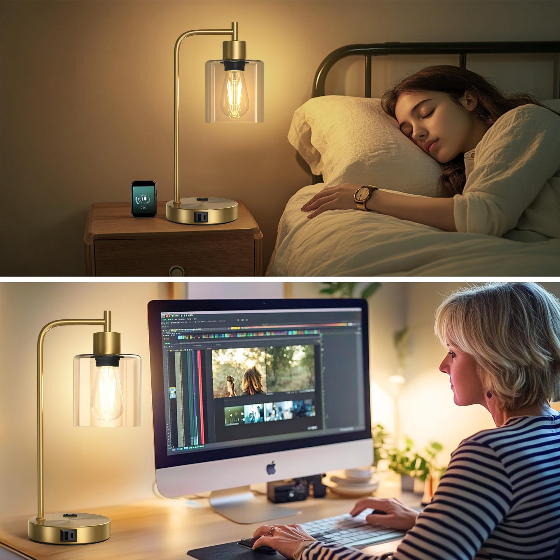 Upgrade Lamp with USB Port and Outlet: Compared with the traditional bedroom lights,our desk light equipped with dual 5V/2.1A charging ports and a 120V AC power outlet. The charging function is available whether the lamp is on or off. The USB port enables you to fast charge your smartphones, tablets, power banks,or any other USB powered devices. And for the power outlet, you can charge for small appliances.