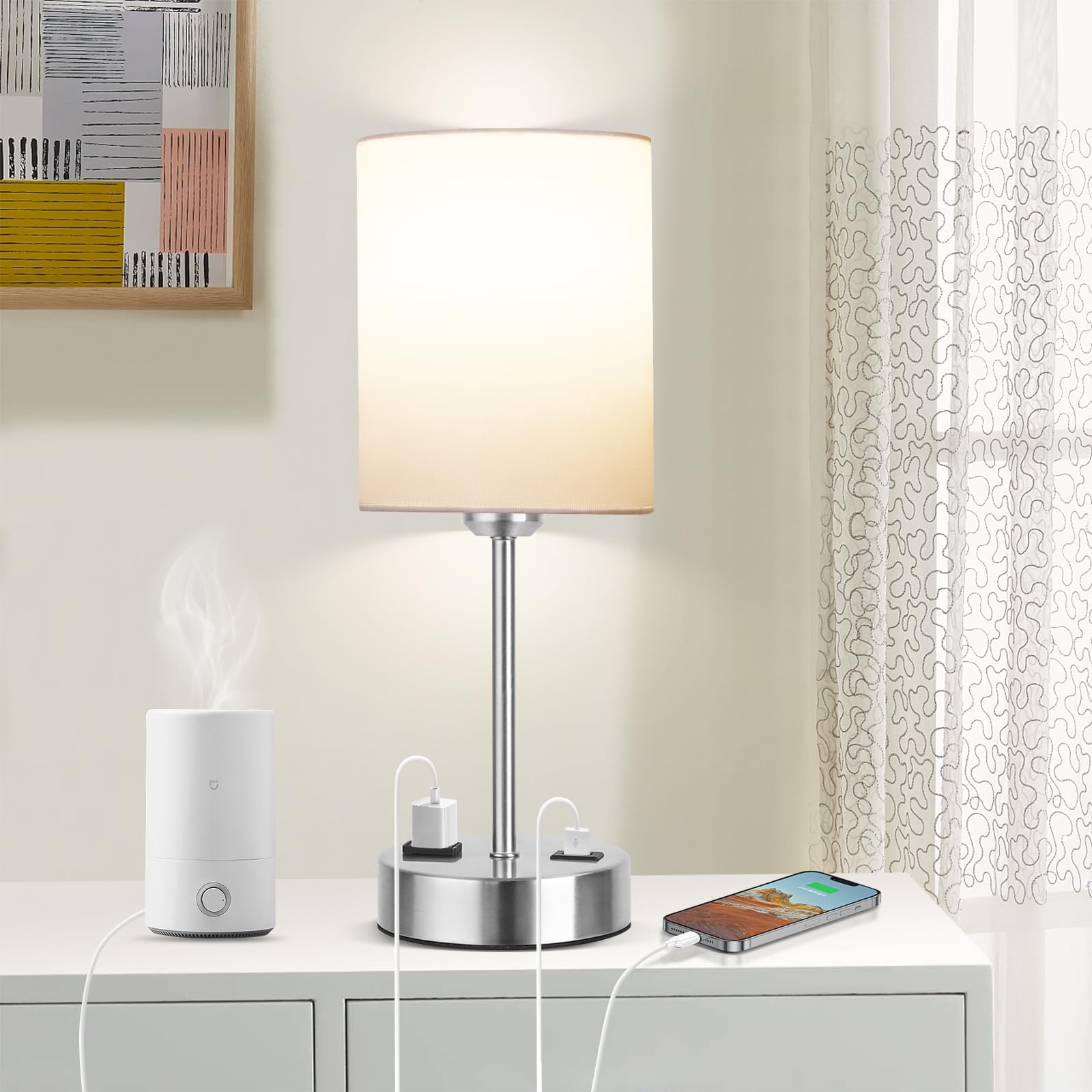ROTTOGOON Touch Table Lamps Set of 2 with USB Port & Power Outlet, Dimmable Desk Lamp for Living Room Nursery Room, Bulbs Included, White