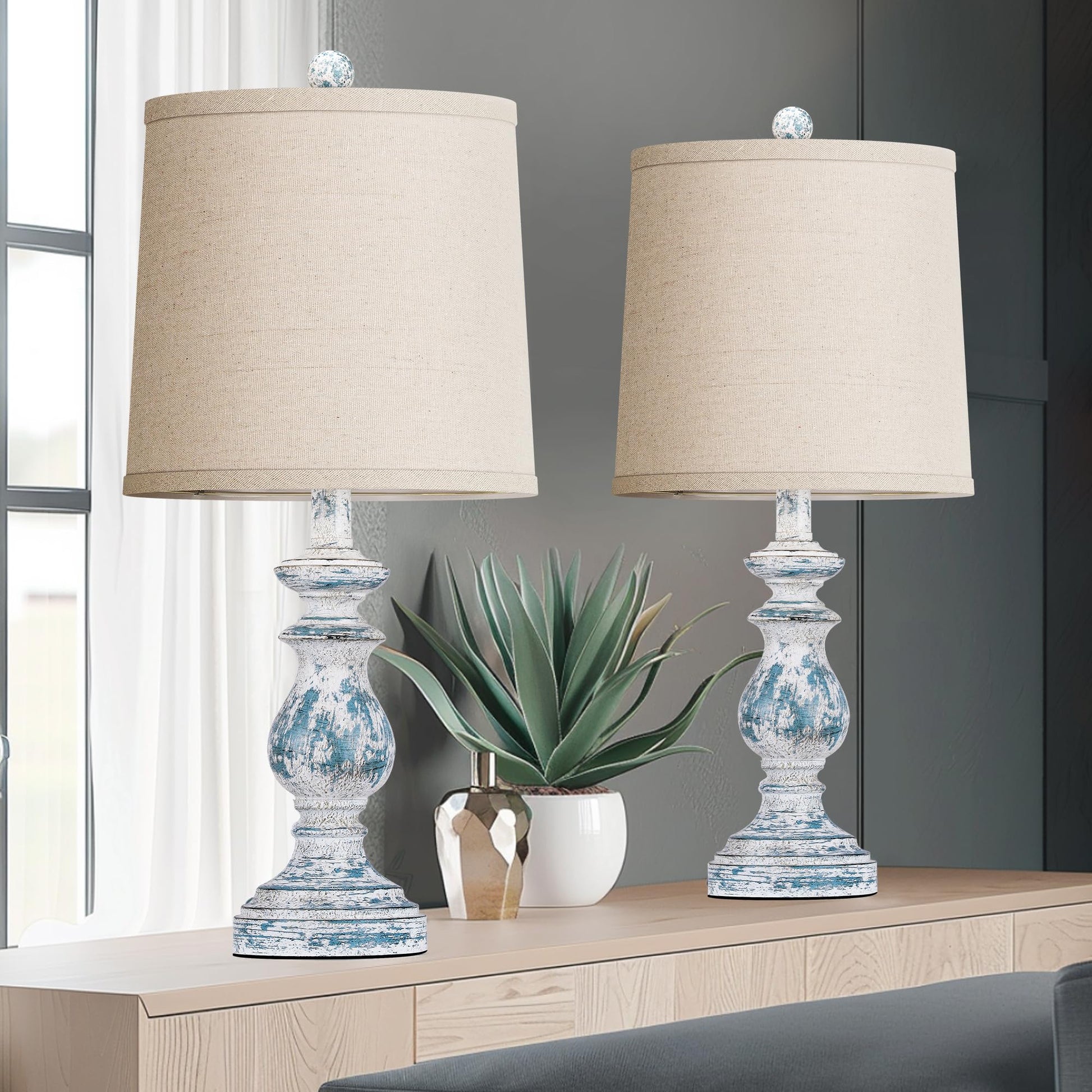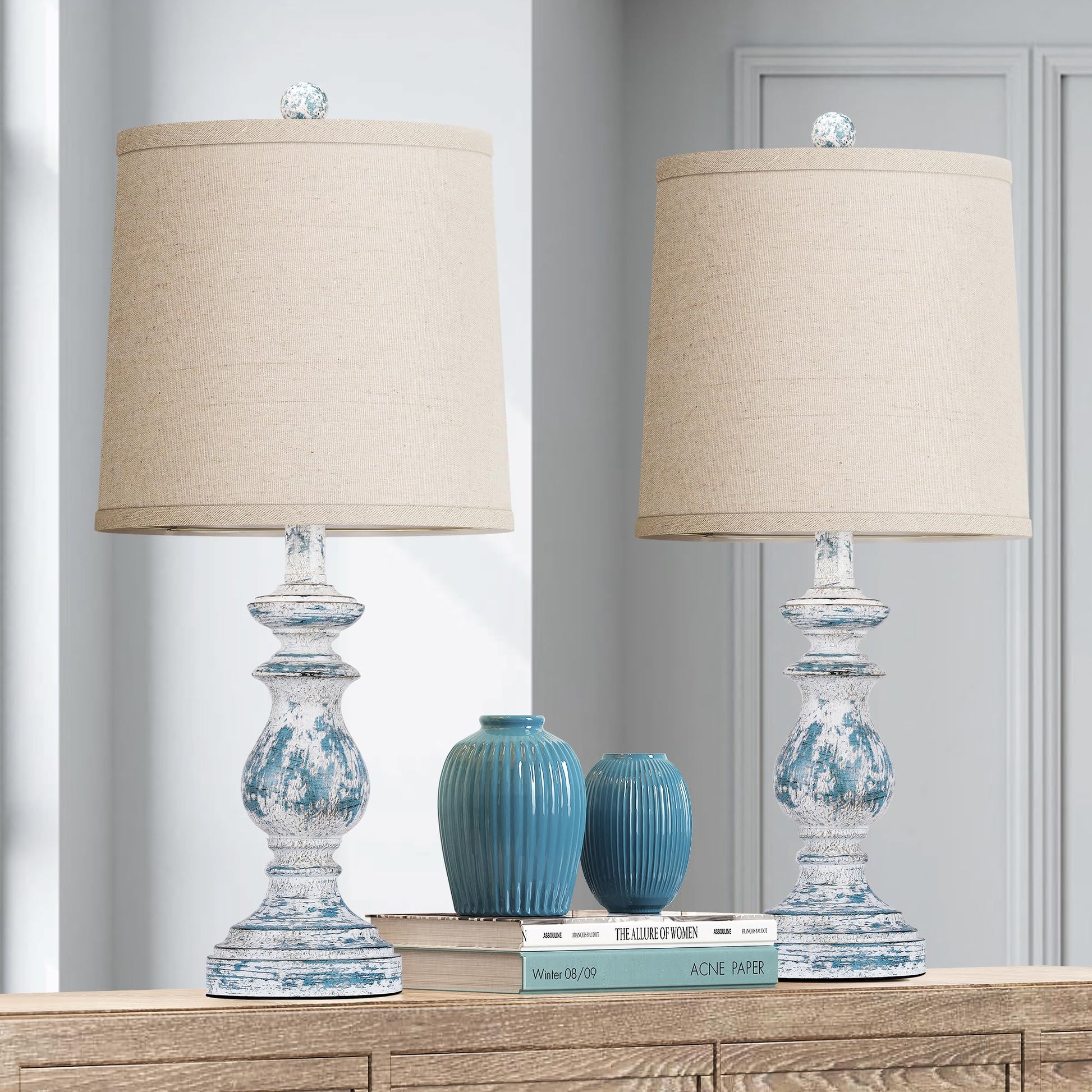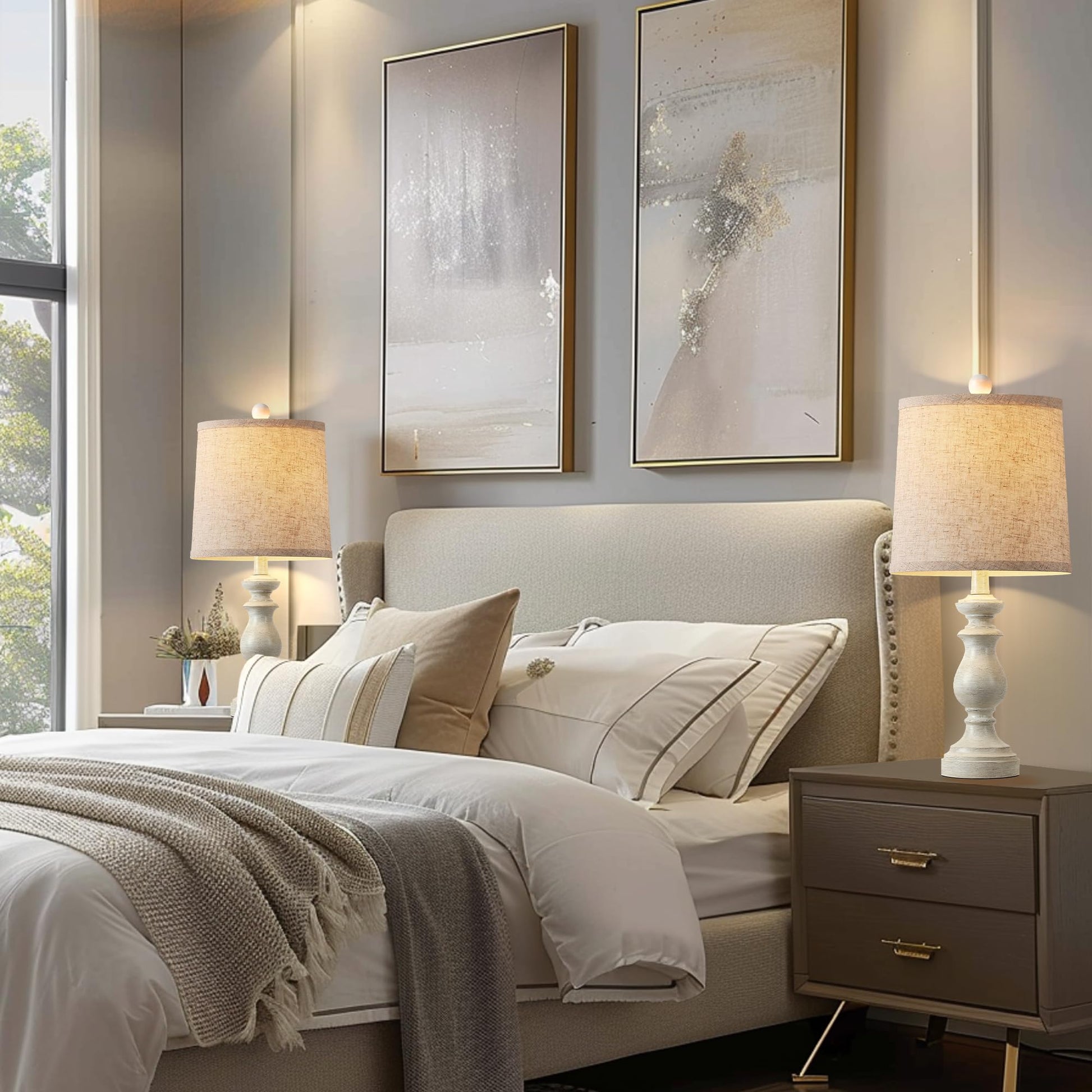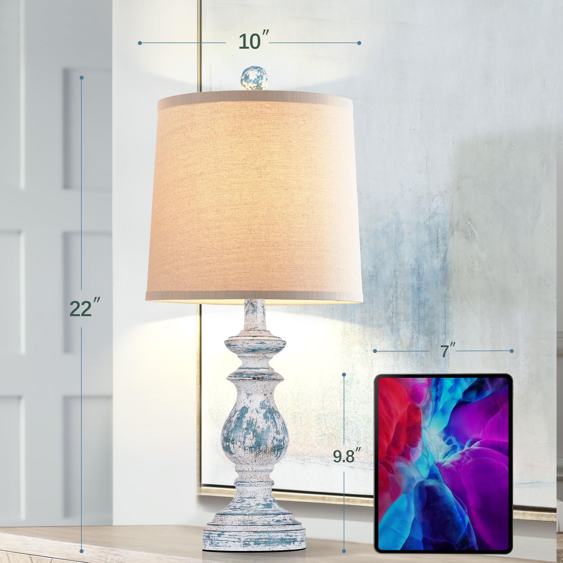ROTTOGOON 22" Traditional Table Lamp Set of 2, Rustic Farmhouse for Living Room Bedroom, Vintage Bedside Nightstand Lamps with Linen Shades