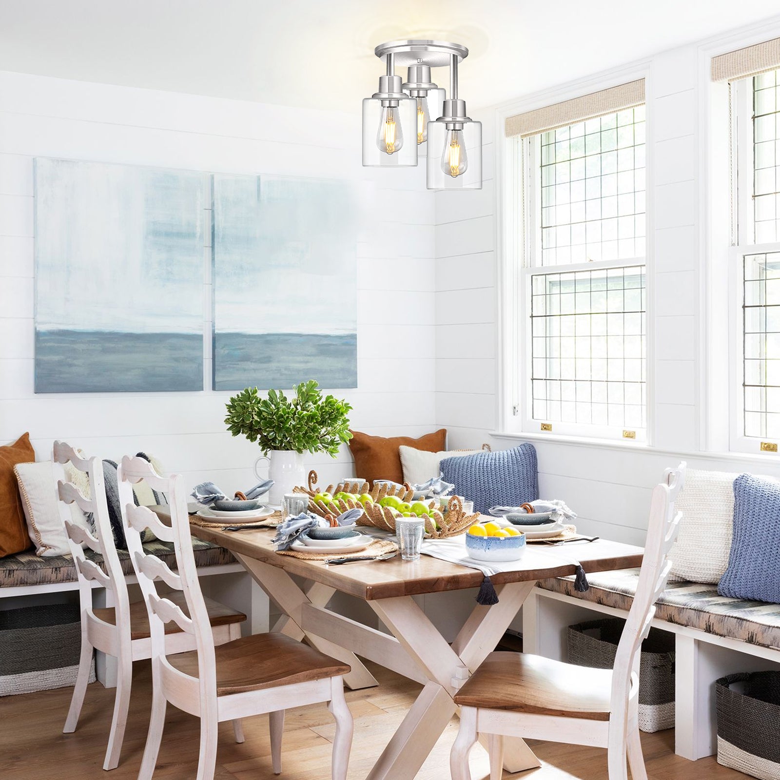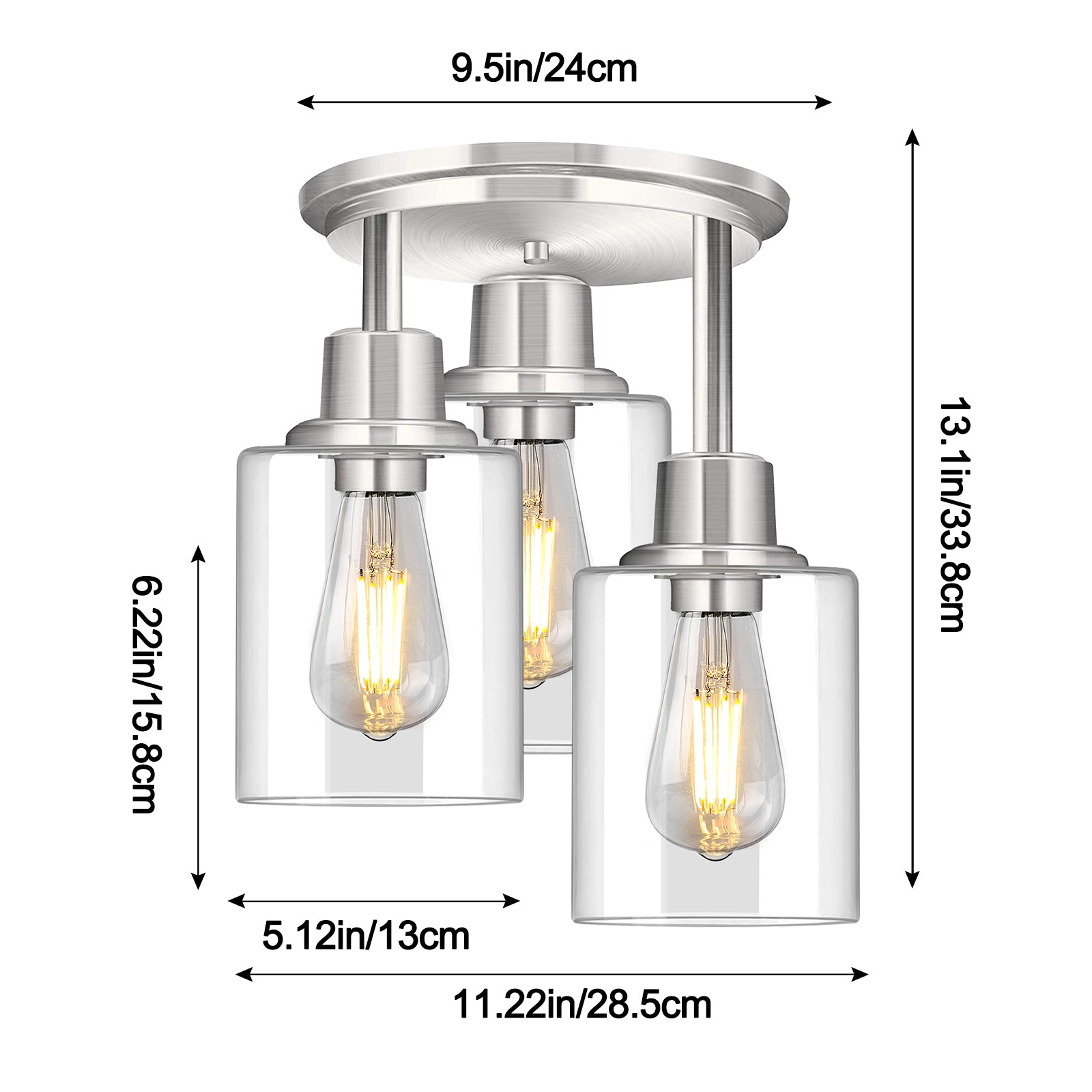 - 【Modern Stylish Design】A design mixed with industrial and contemporary elements which have a brushed nickel finish and clear glass shades. This close to ceiling light fixtures light complements most home decoration styles and is perfect for the kitchen, entrance, hallway, dining room, living room, laundry room, balcony, and more.