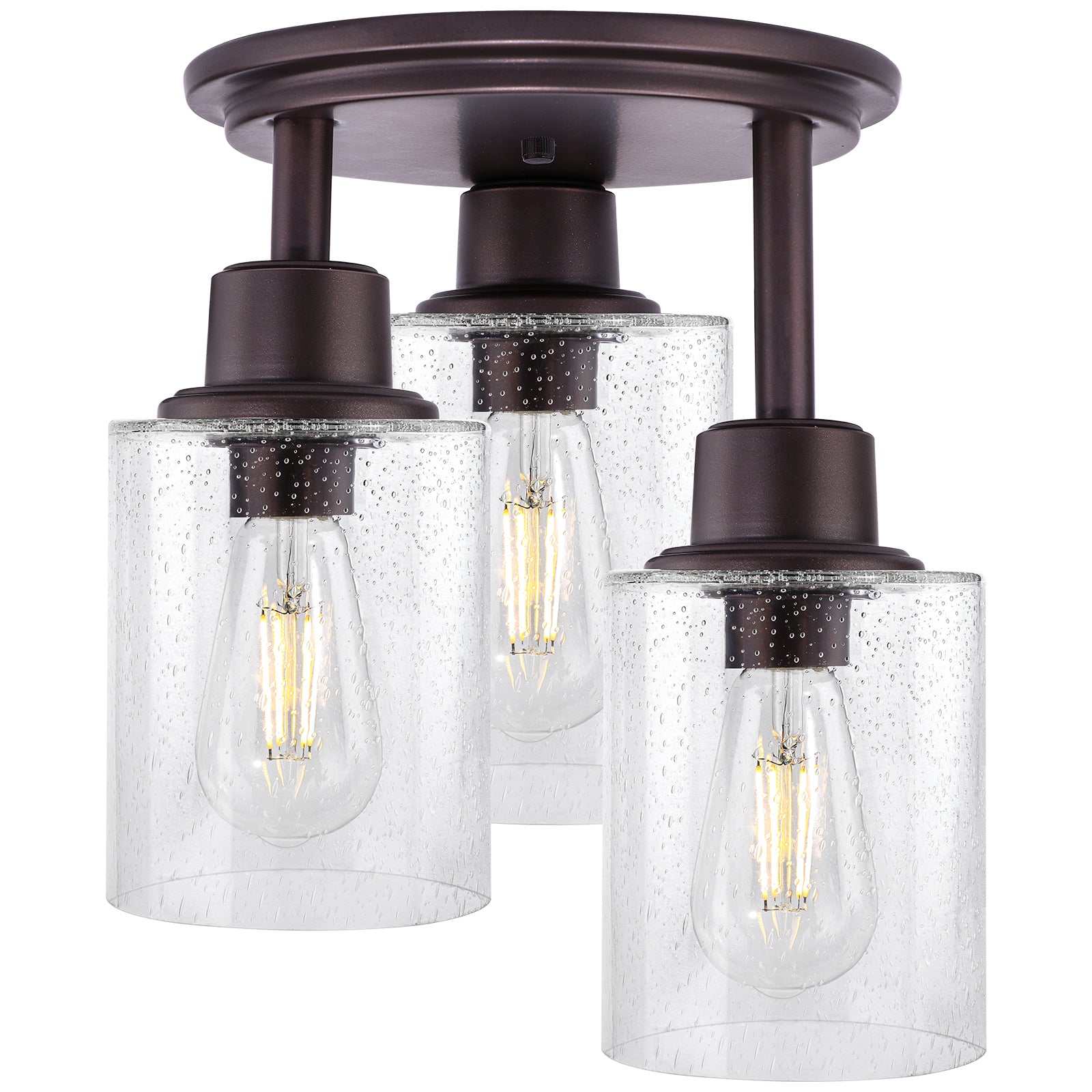 - Rustic Design Lighting - A vintage design mixed with industrial and contemporary elements, oil rubbed bronze finish and clear seeded glass shades, this semi flush mount ceiling light that complements any décor, which is perfect for kitchen, entrance, hallway, dining room, living room, laundry room, balcony and more