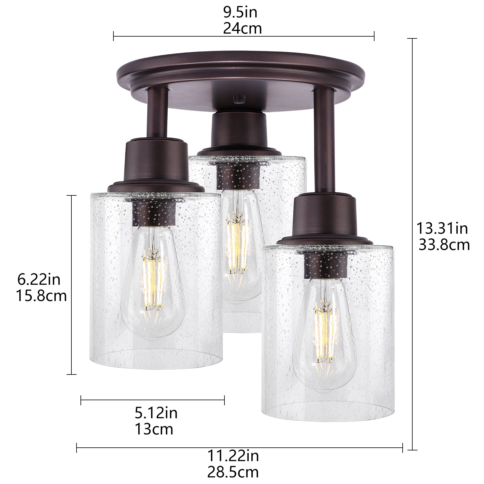 - Various Compatibility - The rustic hallway ceiling light fixtures apply 3 heat-resistant E26 standard sockets (Max. 60W), so you can use all E26 light bulbs to pair them. This oil rubbed bronze light fixture will be fully dimmable with a compatible dimmer switch and dimmable bulbs (for safe transportation, not came included). And you can update the look of the fixture at any time simply by replacing diverse bulbs