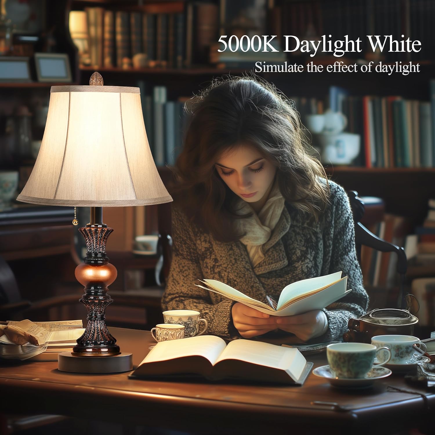 Energy-efficient lighting: included 2 LED light bulbs, no need to buy bulbs separately. To match the 3-way dimmable table lamp perfectly, we specifically choose the dimmable LED Edison bulbs, saving up to 90% on your energy bill. The E26 led bulb comes in 2700K with 720lm brightness, which meets strict test criteria. Provide stable enjoyable and cozy light, no flicker, no dazzle.