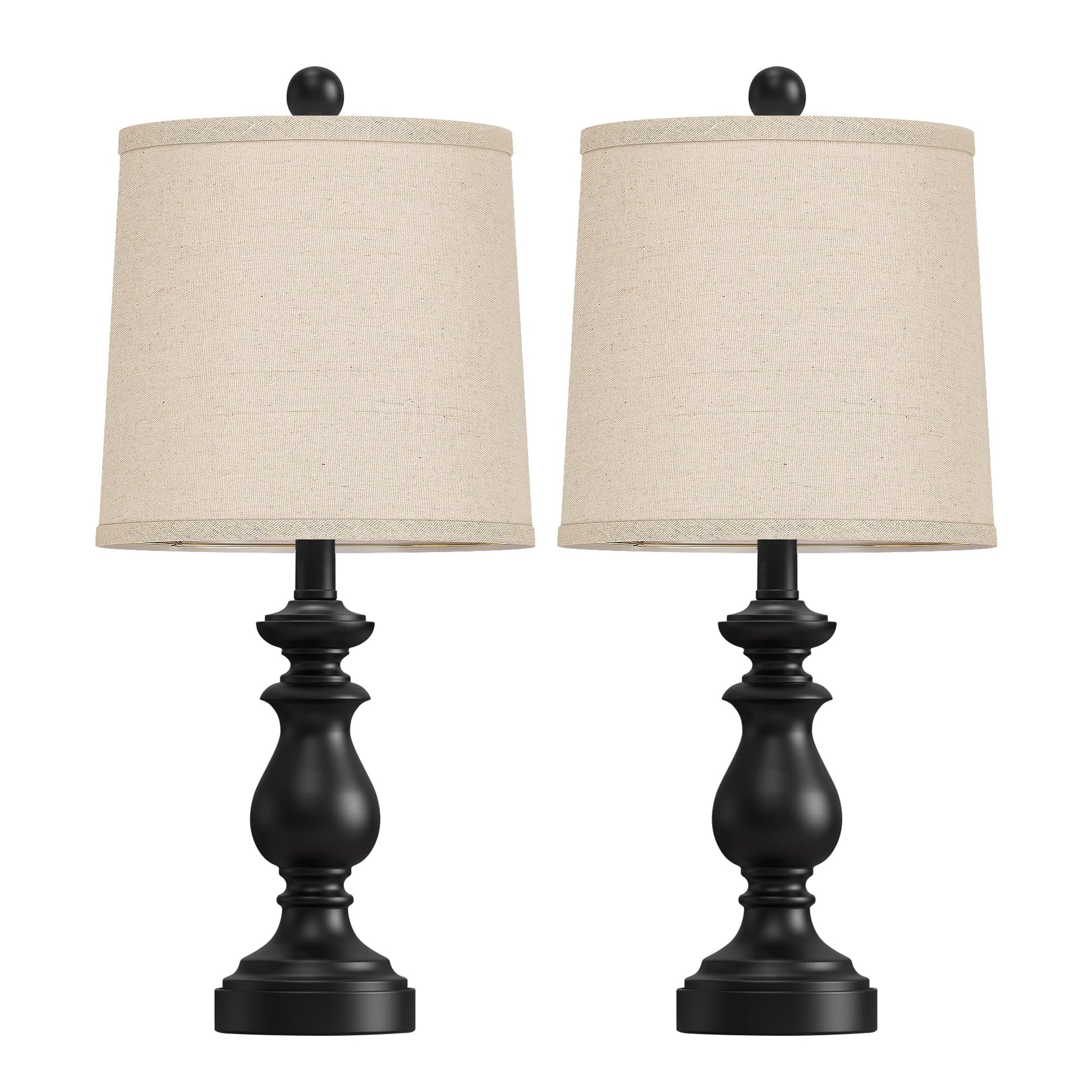 Traditional Table Lamp Set of 2, Rustic Farmhouse Table Lamps for Living Room Bedroom, 22" Bedside Desk Lamps Vintage Nightstand Lamps with Linen Shades, Matte Black