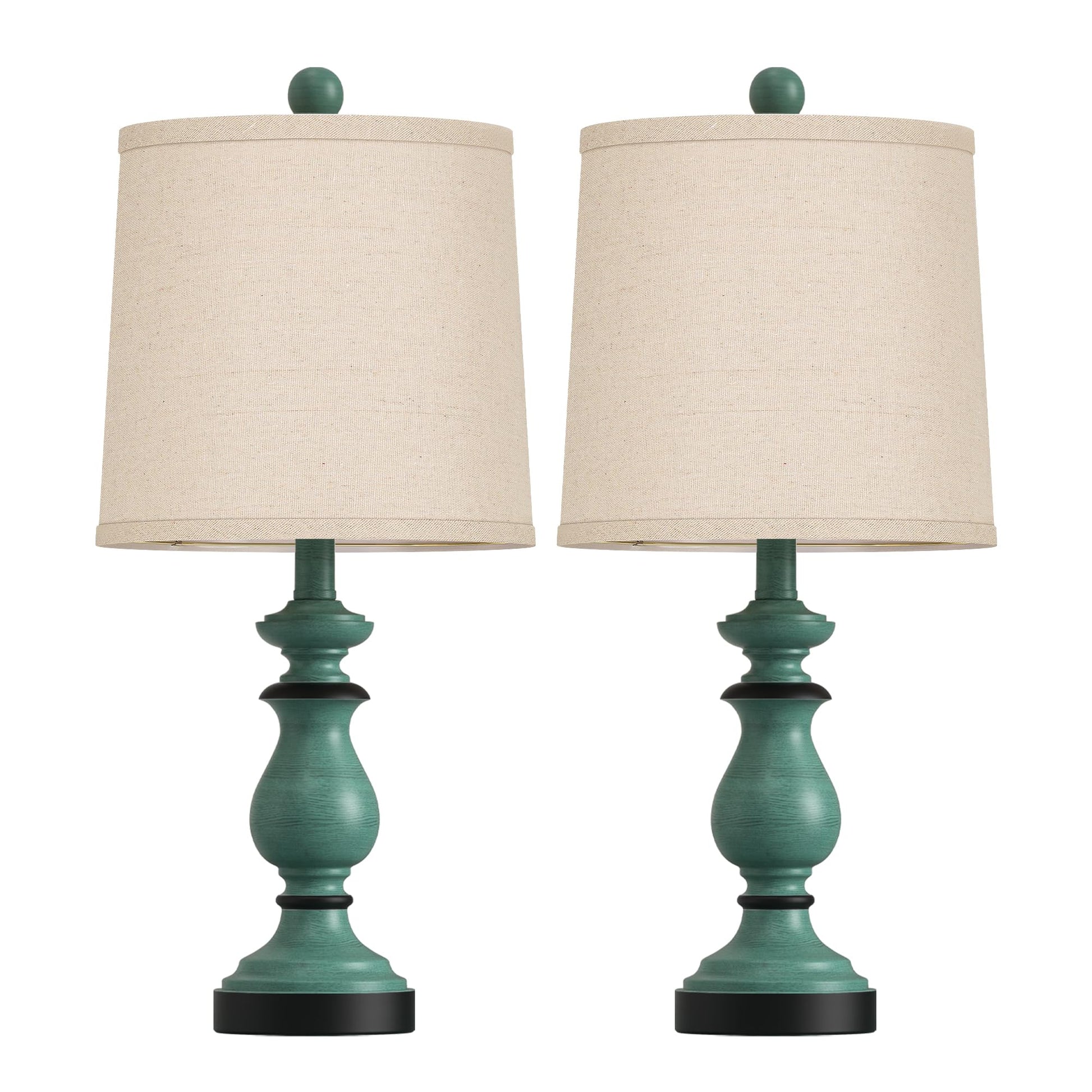 Traditional Table Lamp Set of 2, Rustic Farmhouse Table Lamps for Living Room Bedroom, 22" Bedside Desk Lamps Vintage Nightstand Lamps with Linen Shades, Green